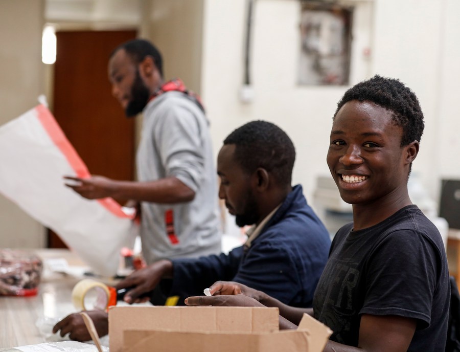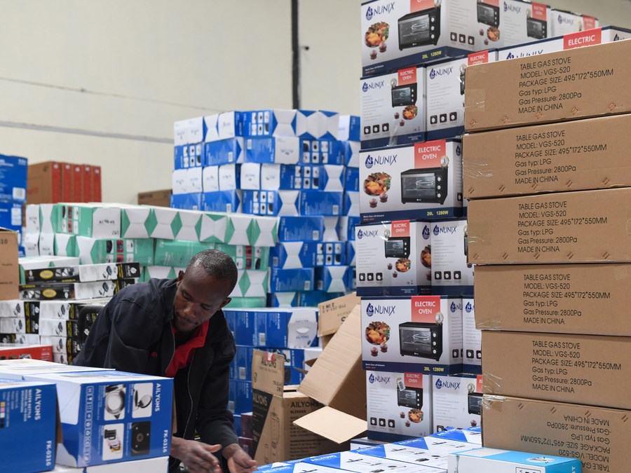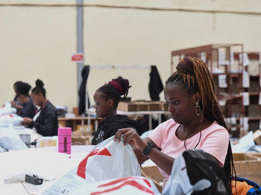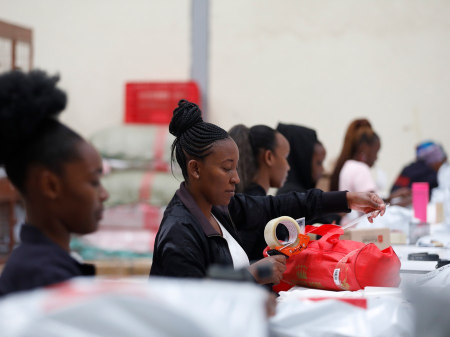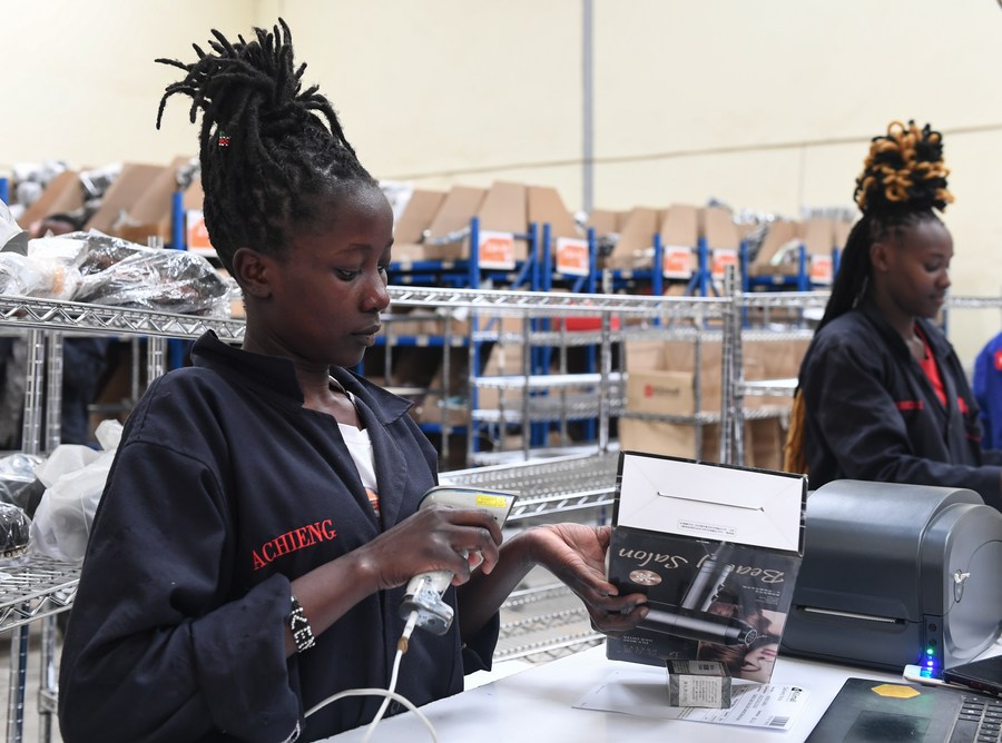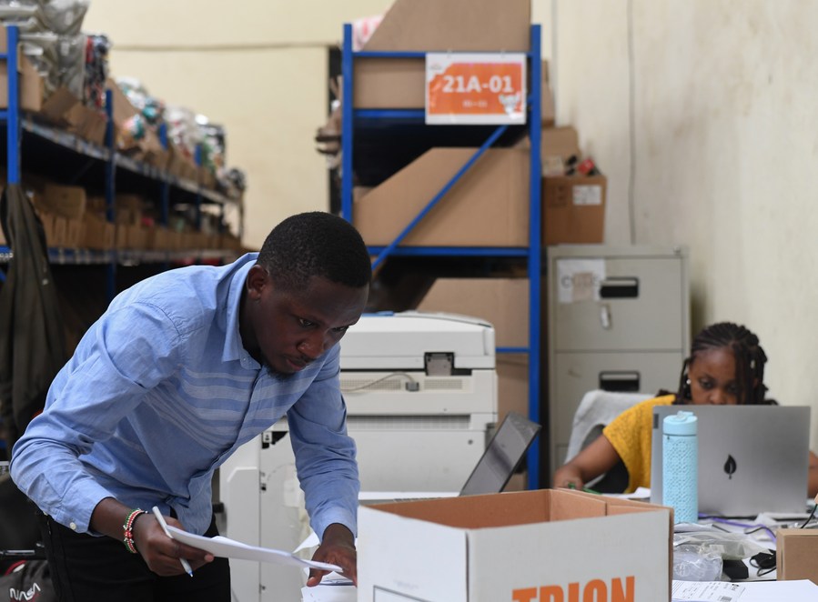 Staff members of Kilimall pack commodities at a warehouse in Mlolongo, Kenya, Nov. 10, 2023. (Xinhua/Li Yahui)