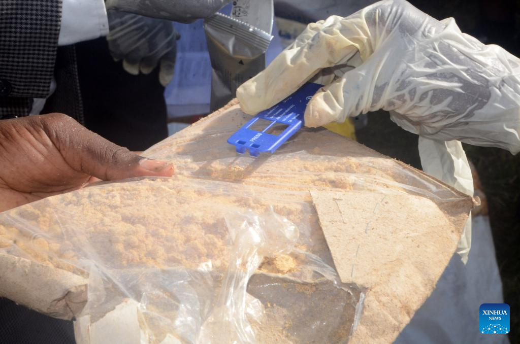 KAMPALA, Nov. 10 (Xinhua) -- The Ugandan police and aviation authorities burnt more than 56 kg of illicit and narcotic drugs seized at Entebbe International Airport in the capital of Kampala from January 2020 to November 2023.