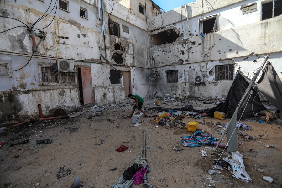 This photo taken on Nov. 9, 2023 shows damages after Israeli forces struck a hospital in Gaza City. (Xinhua)