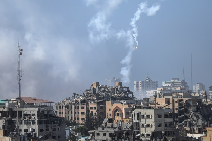 Smoke rises following an Israeli airstrike in Gaza City, on Nov. 9, 2023. (Xinhua)