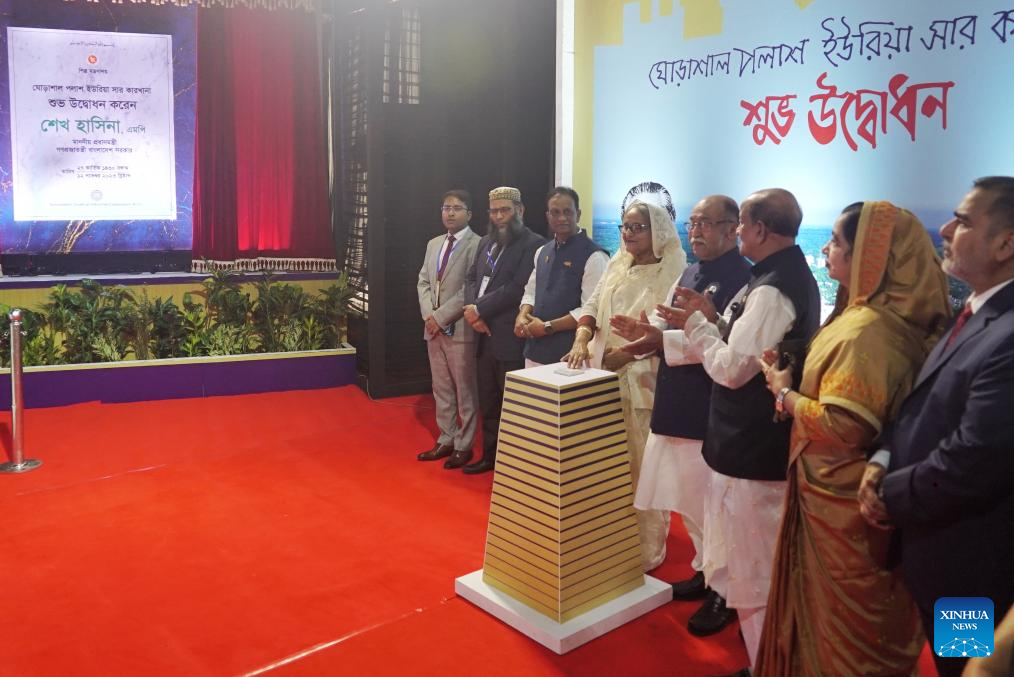 NARSINGDI, Bangladesh, Nov. 13 (Xinhua) -- Bangladeshi Prime Minister Sheikh Hasina has inaugurated the South Asian country's largest and first-ever green fertilizer factory as construction work of the Ghorashal-Polash Urea Fertilizer Project is completed.