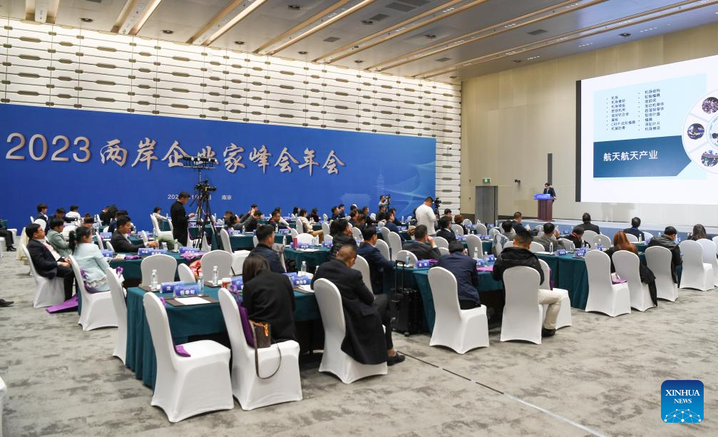 The 2023 annual conference of the Cross-Strait CEO Summit is held at Yangzi River International Conference Center in Nanjing, east China's Jiangsu Province, Nov. 14, 2023. The 2023 annual conference of the Cross-Strait CEO Summit, which celebrates its 10th anniversary this year, opened Tuesday in Nanjing, east China's Jiangsu Province. (Xinhua/Li Bo)