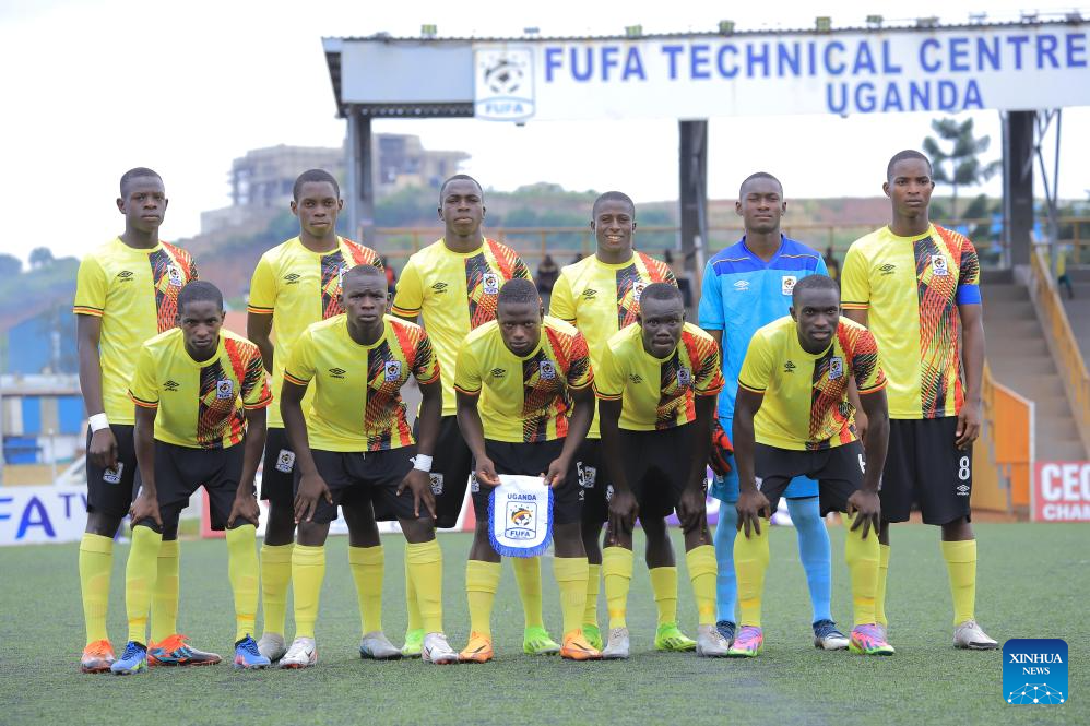 Players of Uganda pose for a picture before the start of the semifinal match between Uganda and Tanzania at the Council for East and Central Africa Football Associations (CECAFA) U15 Boys Championship at FUFA Technical Centre at Njeru in Buikwe District, Uganda, on Nov. 13, 2023. (Photo by Hajarah Nalwadda/Xinhua)
