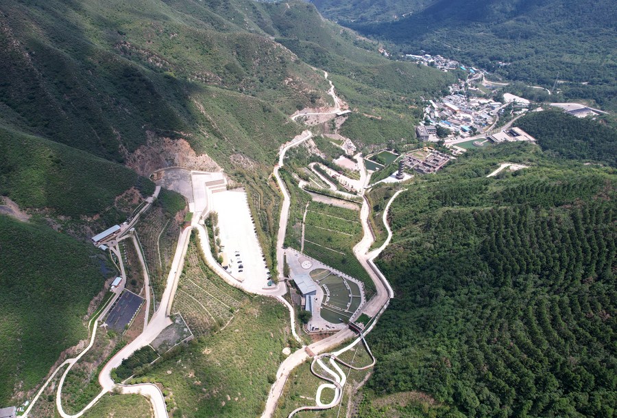 This aerial photo taken on July 24, 2023 shows the Bairuigu resort transformed from Caojiafang mining site in Beijing, capital of China. (Xinhua/Zhang Chenlin)