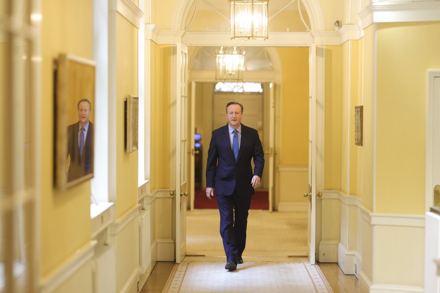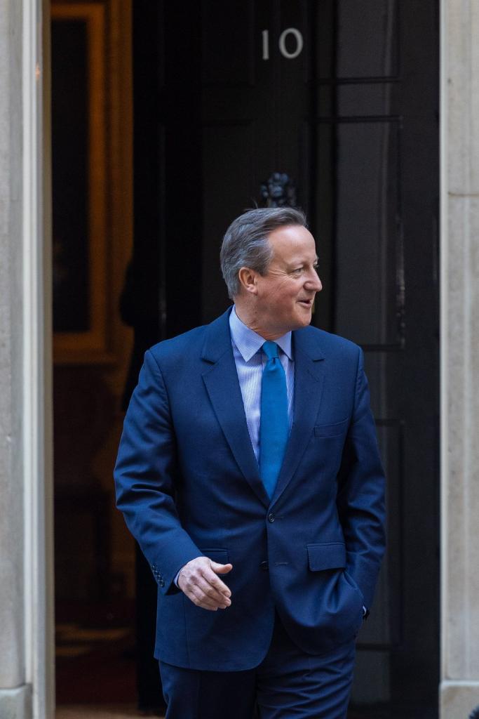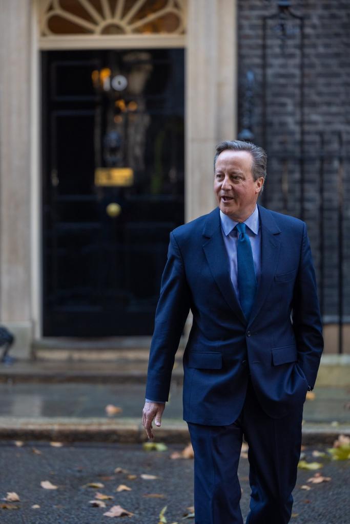 David Cameron walks out 10 Downing Street in London, Britain, on Nov. 13, 2023. (Simon Walker/No 10 Downing Street/Handout via Xinhua)