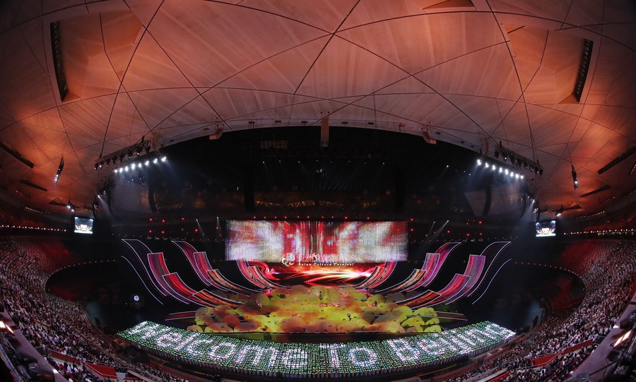 An Asian culture carnival is held during the Conference on Dialogue of Asian Civilizations (CDAC) at the National Stadium, or the Bird's Nest, in Beijing, capital of China, May 15, 2019. (Xinhua/Shen Bohan)