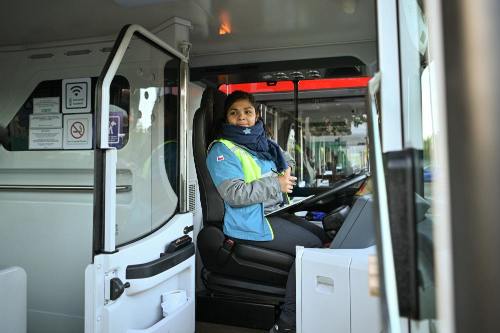 A driver prepares to start an electric bus for the Pan American Games 2023 in Santiago, Chile, Nov. 2, 2023. (Xinhua/Xin Yuewei)