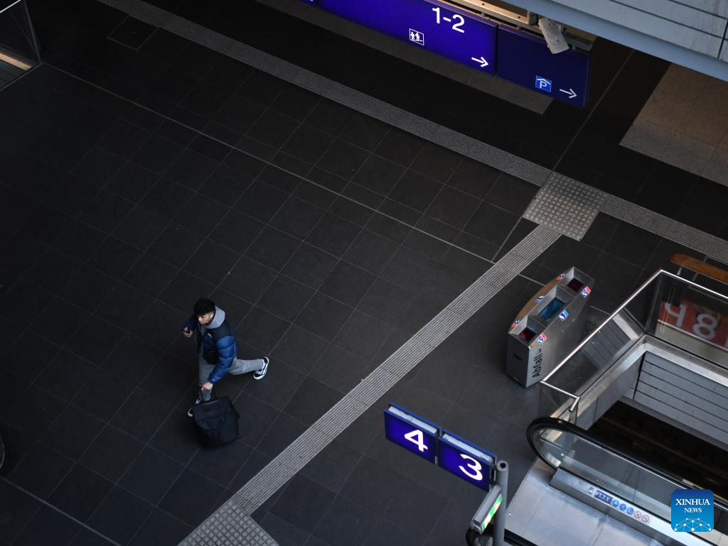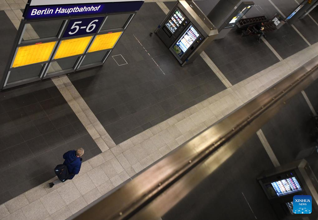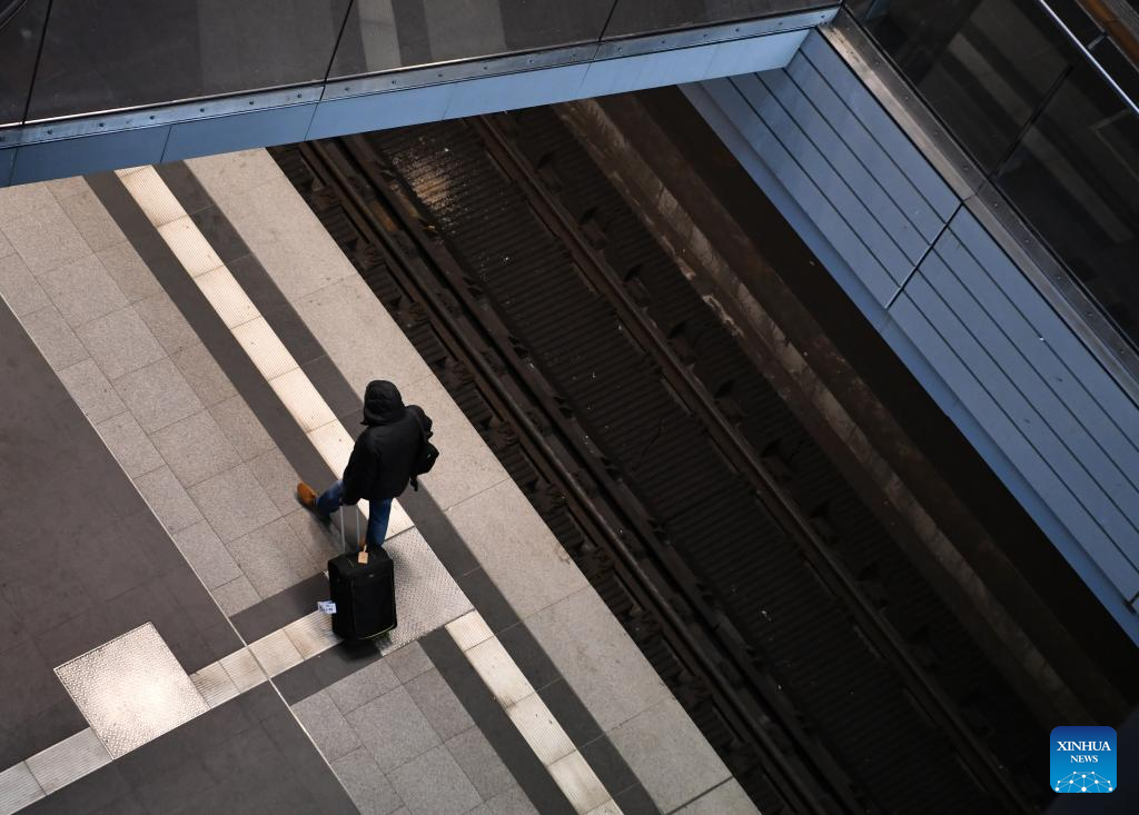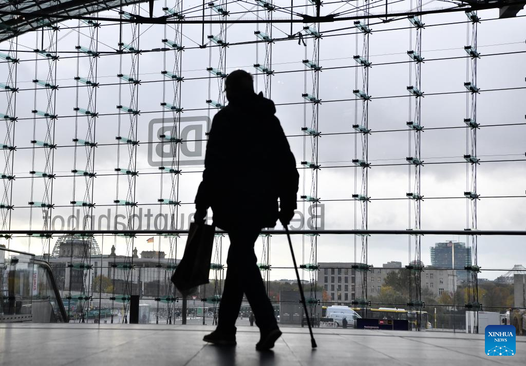 A passenger walks at Berlin Central Train Station in Berlin, Germany, Nov. 16, 2023. Germany is bracing for a short-notice nationwide rail strike that is scheduled to start on Wednesday evening local time and last 20 hours. (Xinhua/Ren Pengfei)
