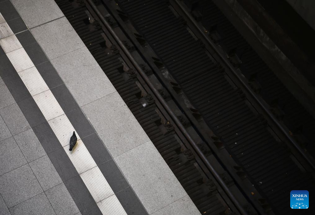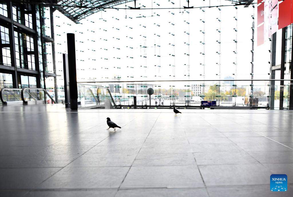 Pigeons are seen at Berlin Central Train Station in Berlin, Germany, Nov. 16, 2023. Germany is bracing for a short-notice nationwide rail strike that is scheduled to start on Wednesday evening local time and last 20 hours. (Xinhua/Ren Pengfei)