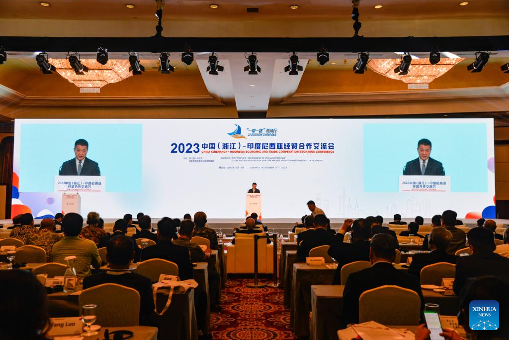 JAKARTA, Nov. 14 (Xinhua) -- Indonesian Minister of Maritime Affairs and Fisheries Sakti Wahyu Trenggono on Tuesday called for closer economic and trade cooperation with China's Zhejiang during an event here attended by a business delegation from the eastern Chinese province.