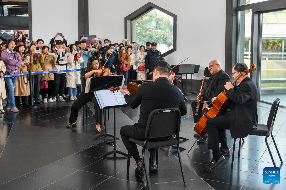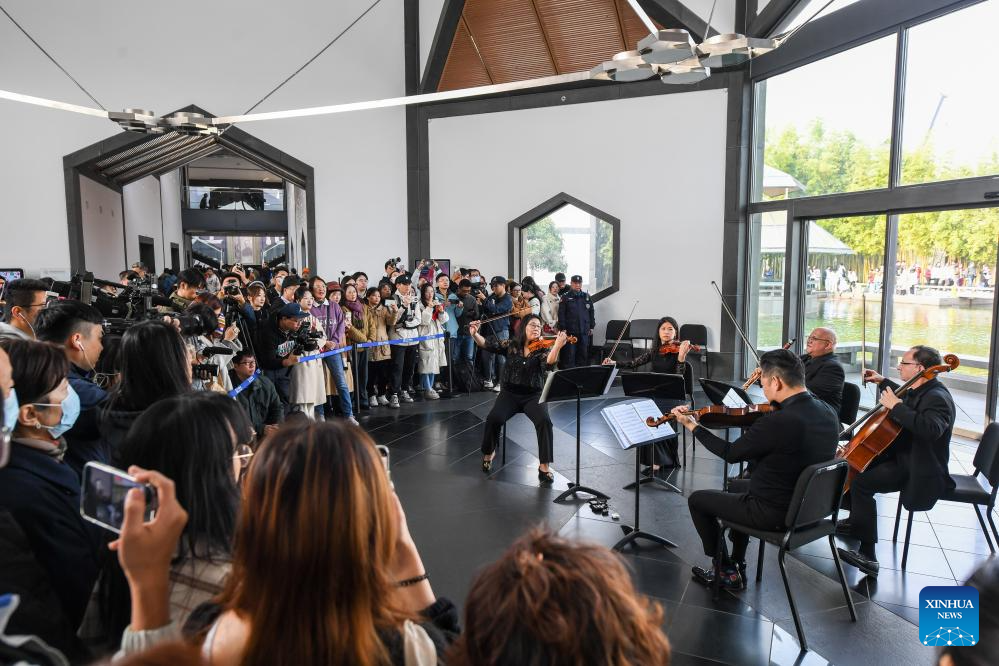 Musicians from the Philadelphia Orchestra perform at Suzhou Museum in Suzhou, east China's Jiangsu Province, Nov. 16, 2023. (Xinhua/Li Bo)