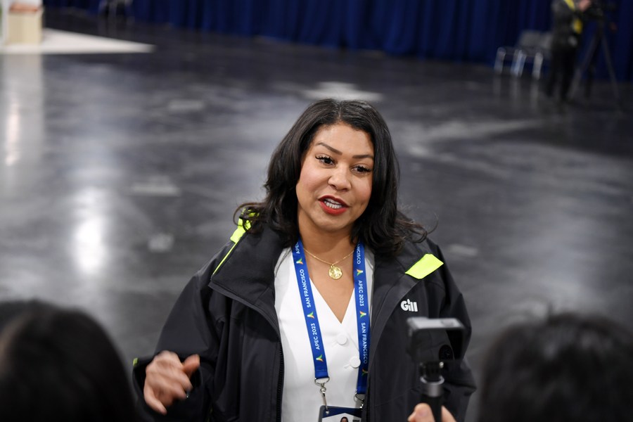 San Francisco Mayor London Breed is interviewed at the APEC 2023 International Media Center in San Francisco, the United States, on Nov. 13, 2023. (Xinhua/Li Rui)