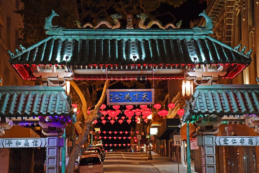 Photo taken on Nov. 14, 2023 shows the Dragon Gate at Chinatown in San Francisco, the United States. (Xinhua/Li Rui)