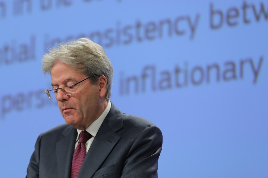 European Commissioner for Economy Paolo Gentiloni speaks at the 2022 Autumn Economic Forecast press conference in Brussels, Belgium, Nov. 11, 2022. (Xinhua/Zheng Huansong)
