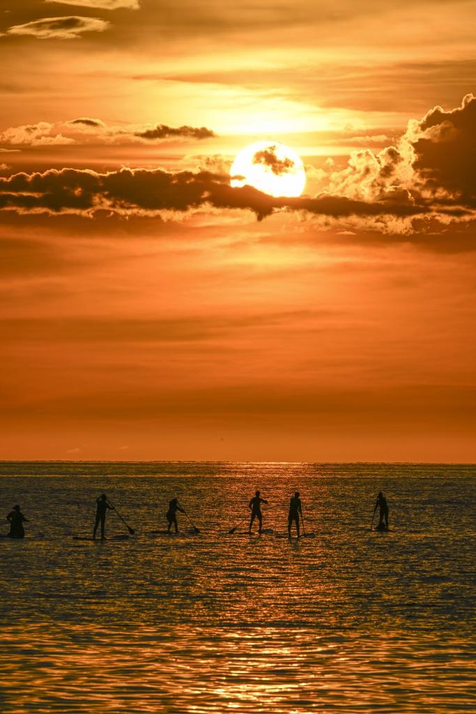 People enjoy themselves on the sea at sunset in Kota Kinabalu, Sabah, Malaysia, Nov. 14, 2023. (Xinhua/Cheng Yiheng)■