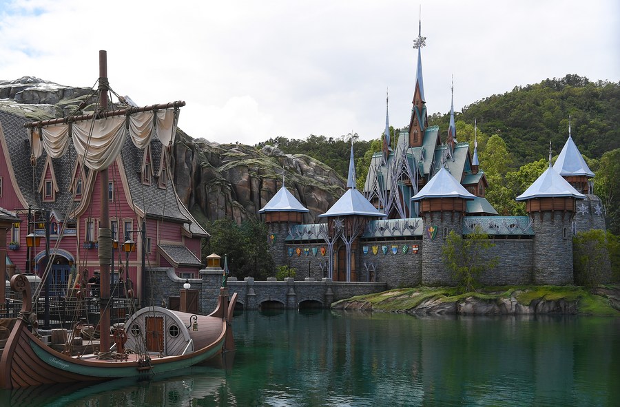 Photo taken on Sept. 12, 2023, shows Arendelle Castle at a new themed land "World of Frozen" of the Hong Kong Disneyland Resort in Hong Kong, south China. (Xinhua/Chen Duo)