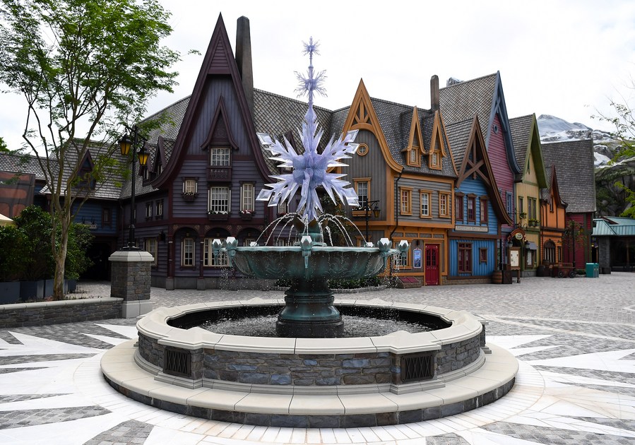 Photo taken on Sept. 12, 2023, shows Friendship Fountain at a new themed land "World of Frozen" of the Hong Kong Disneyland Resort in Hong Kong, south China. (Xinhua/Chen Duo)