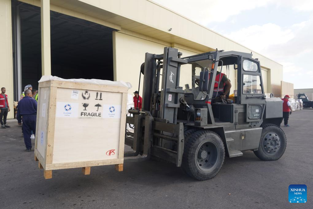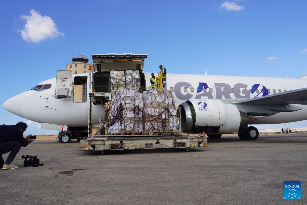 At the first stop of the relief supplies, Egypt's Al-Arish Airport, Xinhua reporter saw several planes carrying relief supplies landed one after another and the on-site staff and volunteers moved the supplies from the planes to the warehouse.