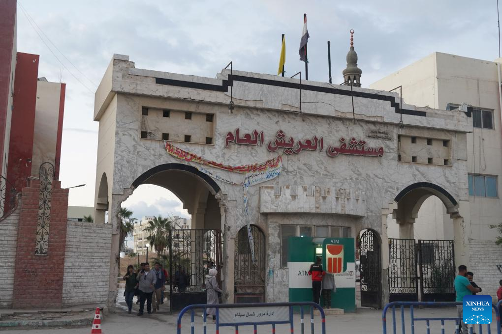 This photo taken on Nov. 15, 2023 shows the gate of Al-Arish Hospital in the North Sinai Province, Egypt. As the Hamas-Israel conflict dragged on into the second month, the Rafah border crossing, the only crossing between Egypt and the Gaza Strip, has become a "life passage" for the Gazans trapped in the besieged enclave. (Xinhua/Yao Bing)