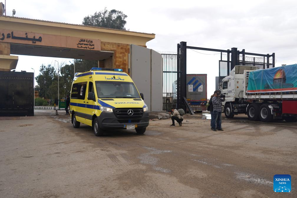 At the border crossing, Xinhua reporter saw trucks carrying relief supplies slowly crossing into Gaza from the Egyptian side of Rafah while several foreign passport holders and ambulances transporting the sick and wounded entered Egypt from Gaza.