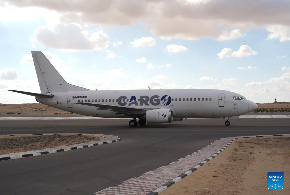 A plane carrying relief supplies lands at Al-Arish Airport in the North Sinai Province, Egypt, Nov. 15, 2023. As the Hamas-Israel conflict dragged on into the second month, the Rafah border crossing, the only crossing between Egypt and the Gaza Strip, has become a "life passage" for the Gazans trapped in the besieged enclave. (Xinhua/Yao Bing)