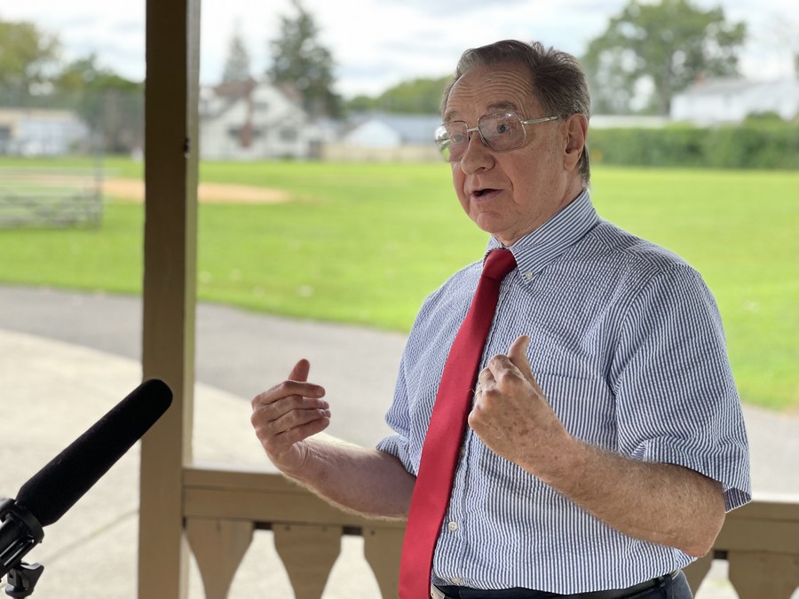 Richard A. Black, the Schiller Institute's representative at the United Nations in New York, speaks during an interview in South Hackensack, New Jersey, the United States, on Aug. 20, 2021. (Xinhua/Zhang Mocheng)