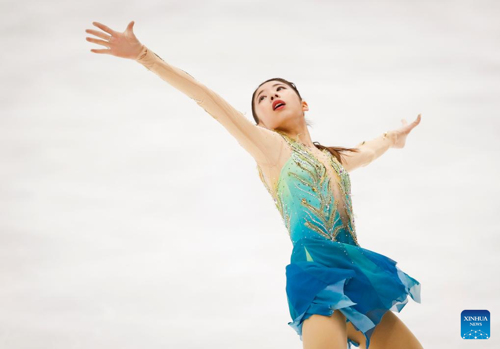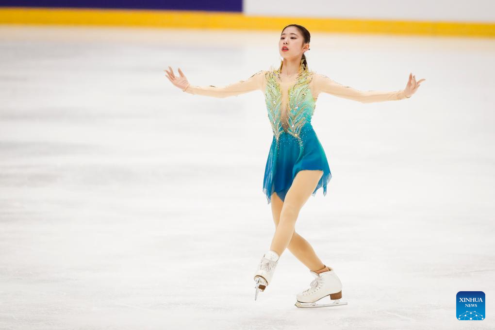 Kim Chaeyeon of South Korea performs during the women free skating at the ISU Grand Prix of figure skating 2023 Grand Prix Espoo in Espoo, Finland, Nov. 18, 2023. (Photo by Kalle Parkkinen/Xinhua)