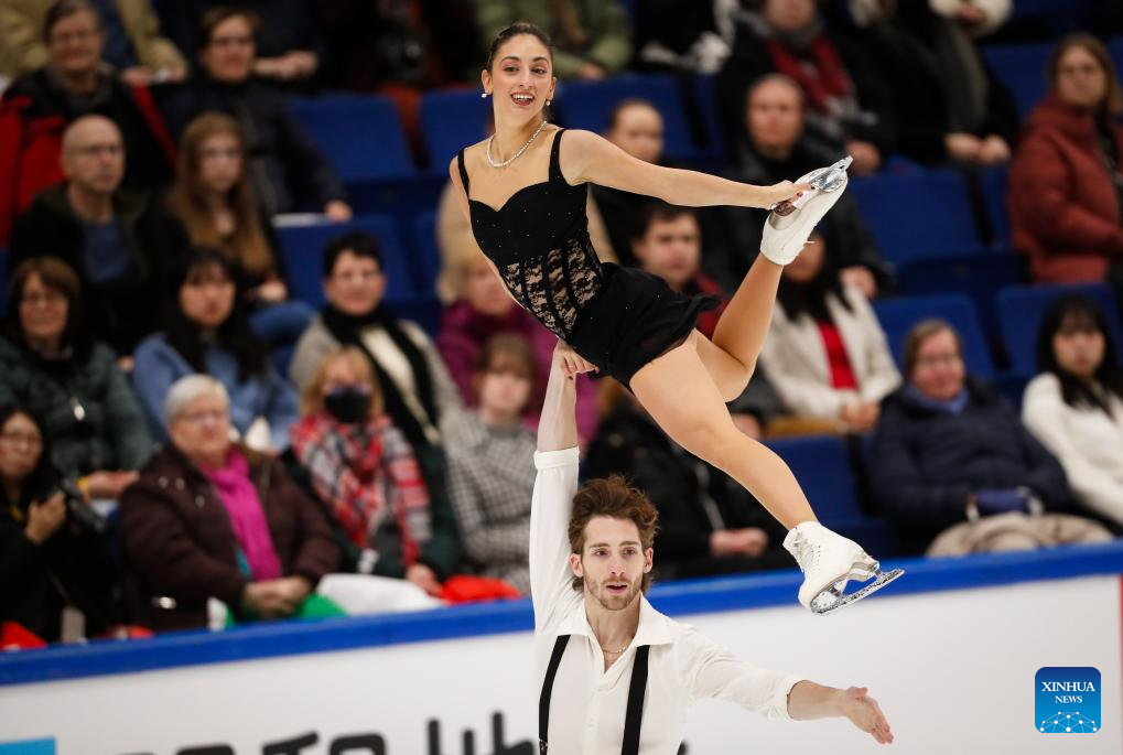 Sara Conti (R)/Niccolo Macii of Italy perform during the Pairs free skating at the ISU Grand Prix of figure skating 2023 Grand Prix Espoo in Espoo, Finland, Nov. 18, 2023. (Photo by Kalle Parkkinen/Xinhua)