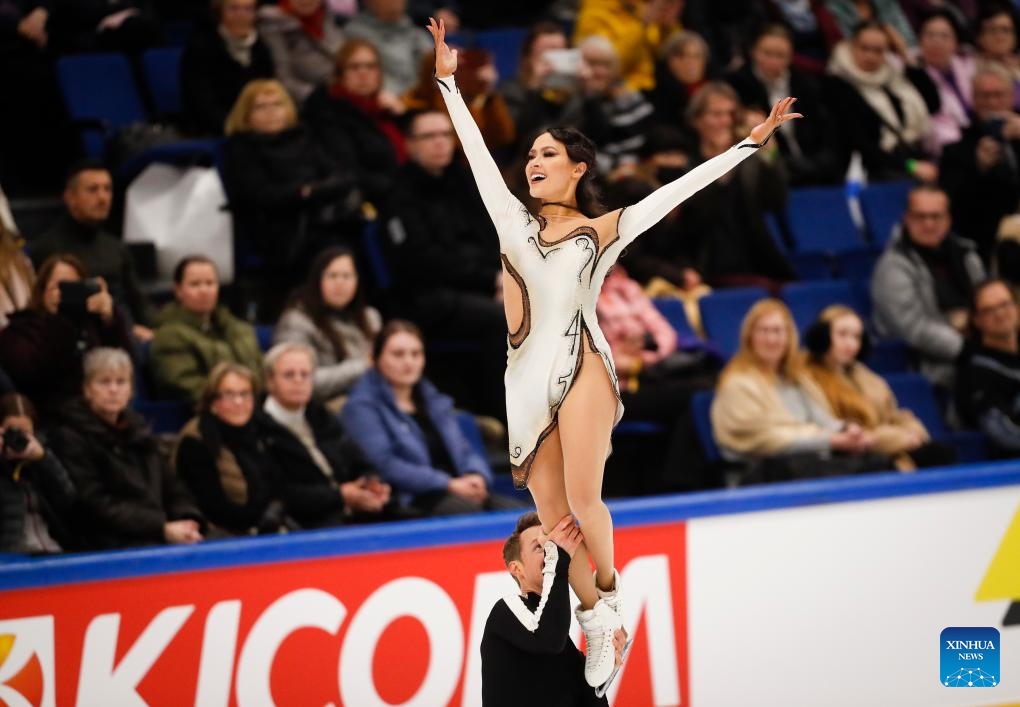 Maria Pavlova (front)/Alexei Sviatchenko of Hungary perform during the Pairs free skating at the ISU Grand Prix of figure skating 2023 Grand Prix Espoo in Espoo, Finland, Nov. 18, 2023. (Photo by Kalle Parkkinen/Xinhua)