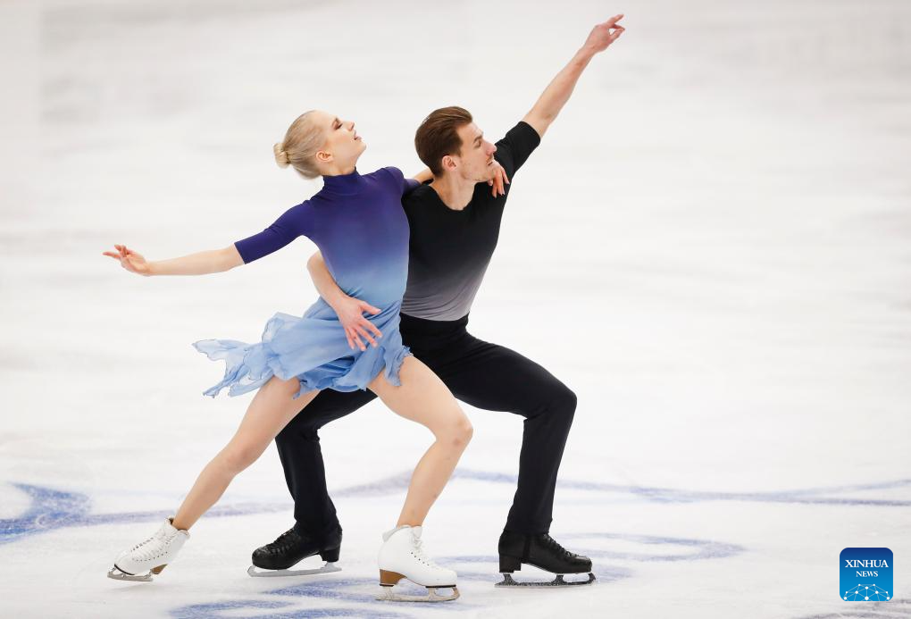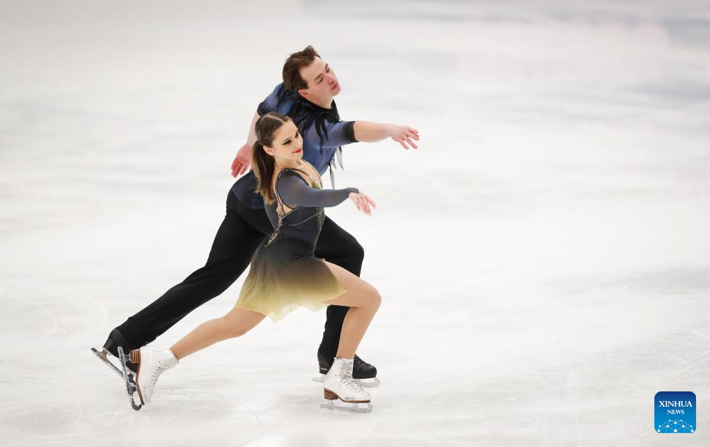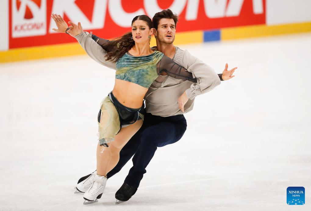 Laurence Fournier Beaudry (L)/Nikolaj Soerensen of Canada perform during the Ice Dance free dance at the ISU Grand Prix of figure skating 2023 Grand Prix Espoo in Espoo, Finland, Nov. 18, 2023. (Photo by Kalle Parkkinen/Xinhua)