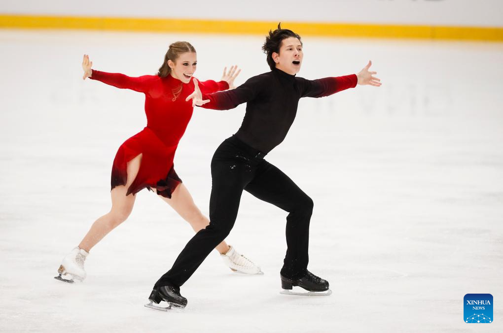 Emilea Zingas (R)/Vadym Kolesnik of the United States perform during the Ice Dance free dance at the ISU Grand Prix of figure skating 2023 Grand Prix Espoo in Espoo, Finland, Nov. 18, 2023. (Photo by Kalle Parkkinen/Xinhua)