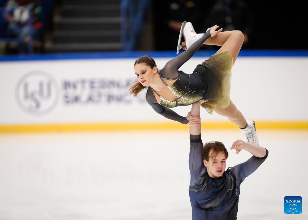 Maria Pavlova (top)/Alexei Sviatchenko of Hungary perform during the Pairs free skating at the ISU Grand Prix of figure skating 2023 Grand Prix Espoo in Espoo, Finland, Nov. 18, 2023. (Photo by Kalle Parkkinen/Xinhua)