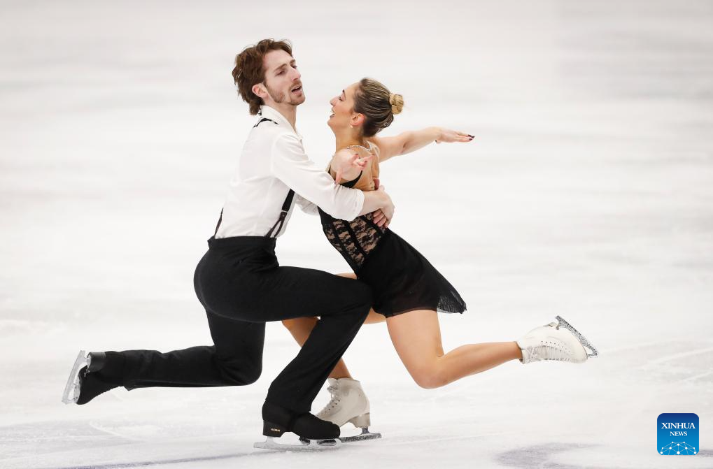 Madison Chock (R)/Evan Bates of the United States perform during the Ice Dance free dance at the ISU Grand Prix of figure skating 2023 Grand Prix Espoo in Espoo, Finland, Nov. 18, 2023. (Photo by Kalle Parkkinen/Xinhua)