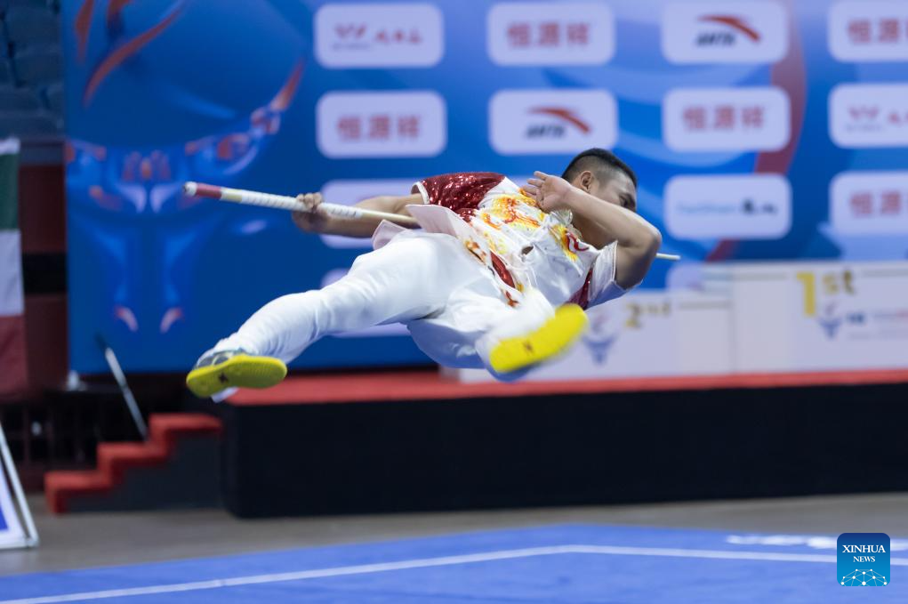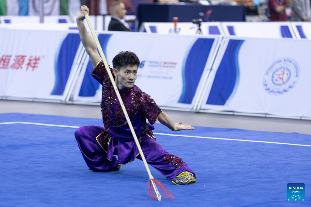 Johnzenth Rapada Gajo of the Philippines competes during the men's Gunshu event at the 16th World Wushu Championships (WWC) in Fort Worth, Texas, the United States, on Nov. 19, 2023. (Photo by Dan Tian/Xinhua)