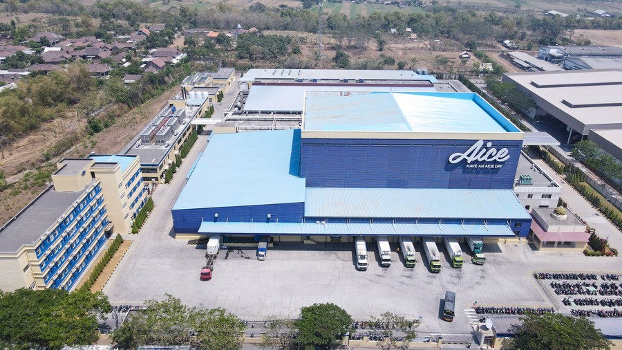This aerial photo taken on Sept. 15, 2023 shows an Aice factory in Mojokerto, East Java, Indonesia. (Xinhua/Xu Qin)