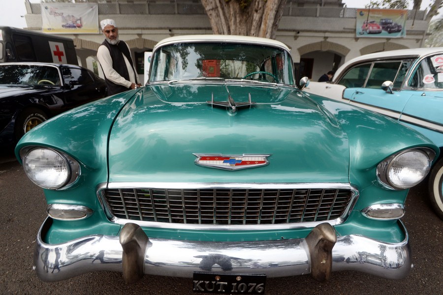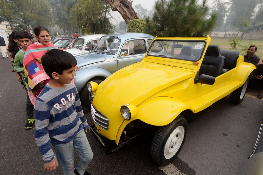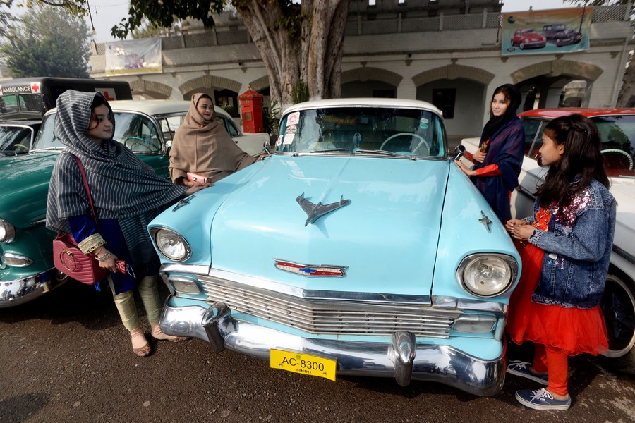 People visit a vintage and classic car show in Peshawar, Pakistan, on Nov. 19, 2023. (Photo by Umar Qayyum/Xinhua)