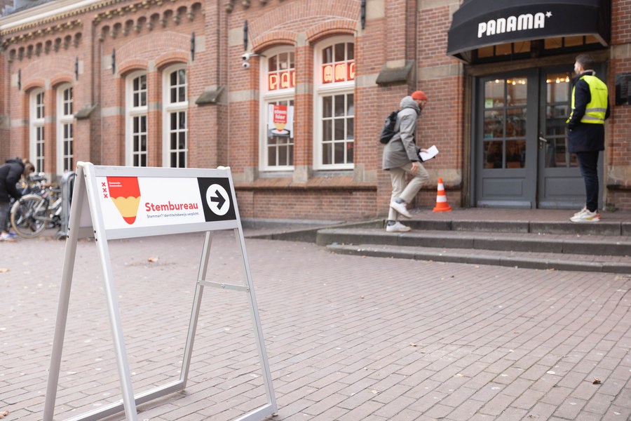 A voter walks into a polling station in Amsterdam, the Netherlands, Nov. 22, 2023. (Photo by Sylvia Lederer/Xinhua)