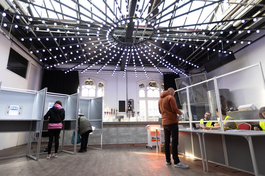 People cast their votes at a polling station in Amsterdam, the Netherlands, Nov. 22, 2023. (Photo by Sylvia Lederer/Xinhua)