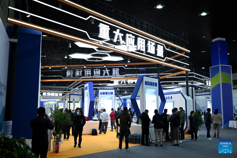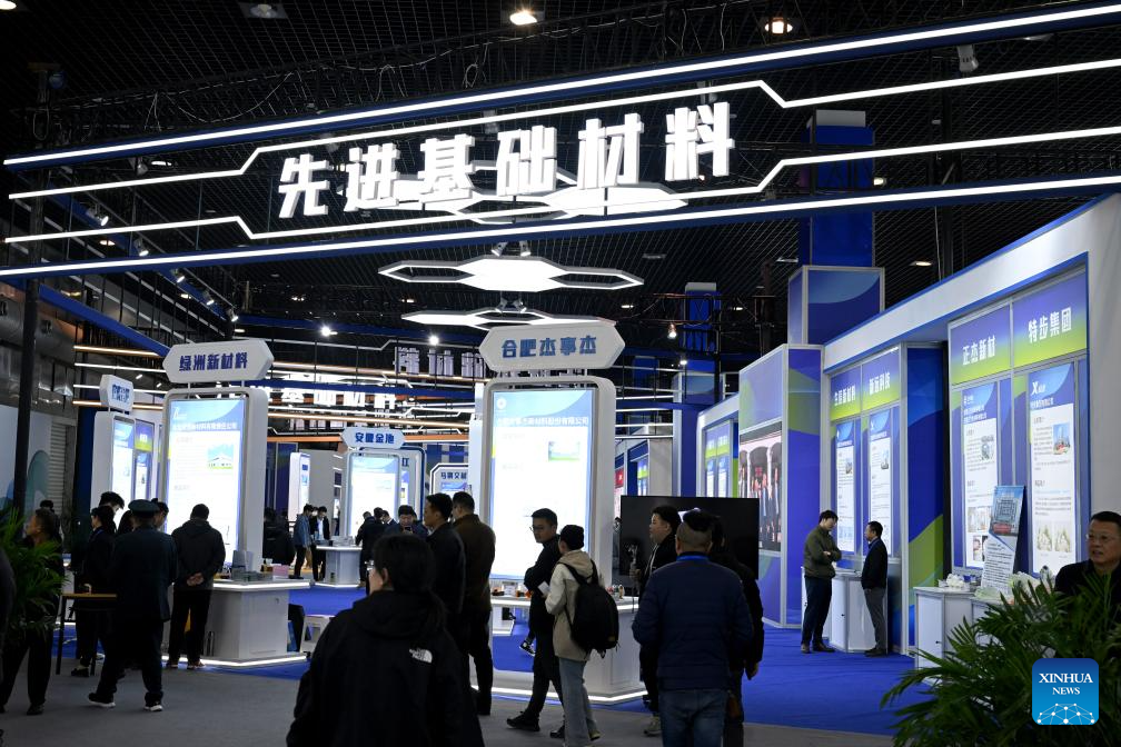 People visit the 3rd International New Materials Industry Conference in Bengbu, east China's Anhui Province, Nov. 24, 2023. The event kicked off in Anhui's Bengbu on Friday, featuring exhibitions, forums, seminars and trade fairs in the new materials industry. (Xinhua/Huang Bohan)
