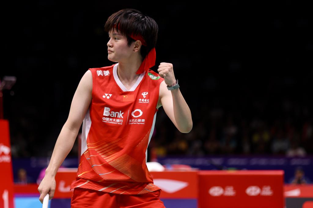 Wang Zhiyi of China celebrates during the second round of the women's singles at the 2023 BWF China Masters in Shenzhen, China on November 23, 2023. (Xinhua/Wu Zhizhao)