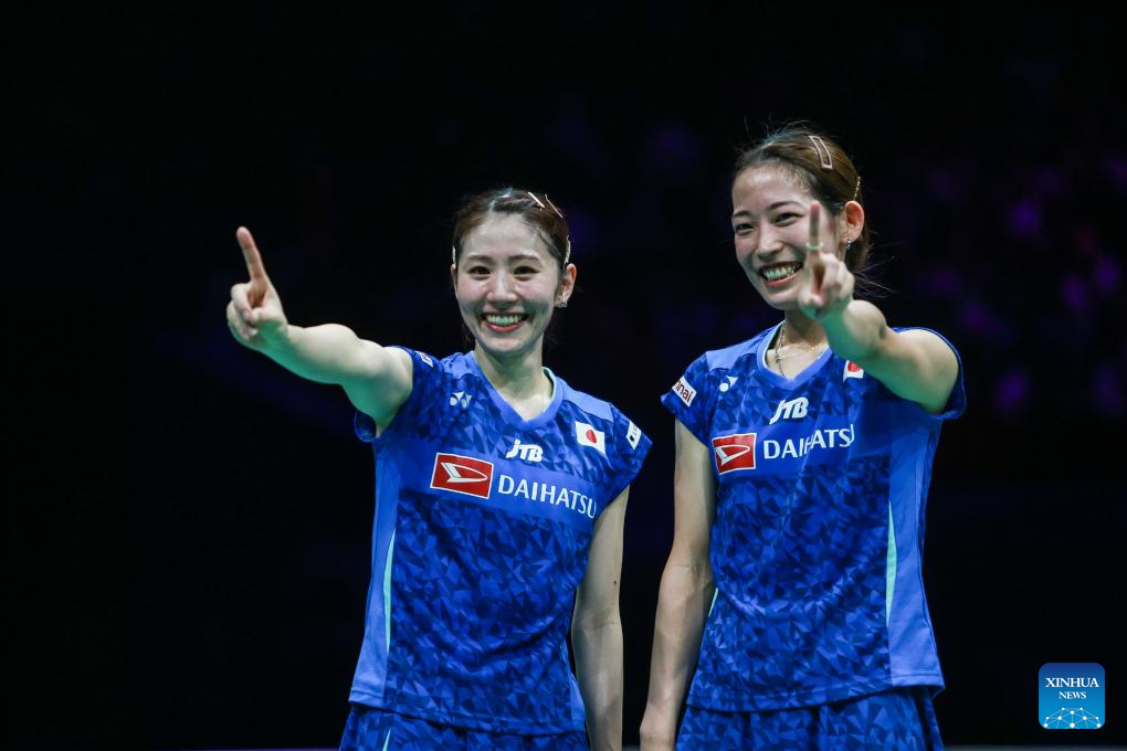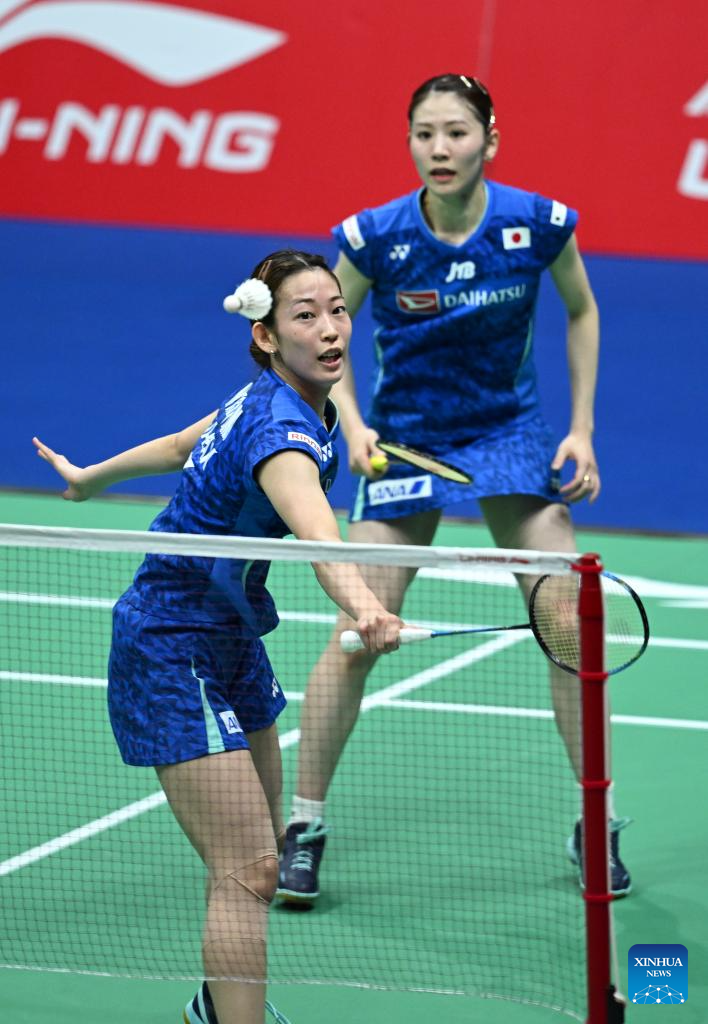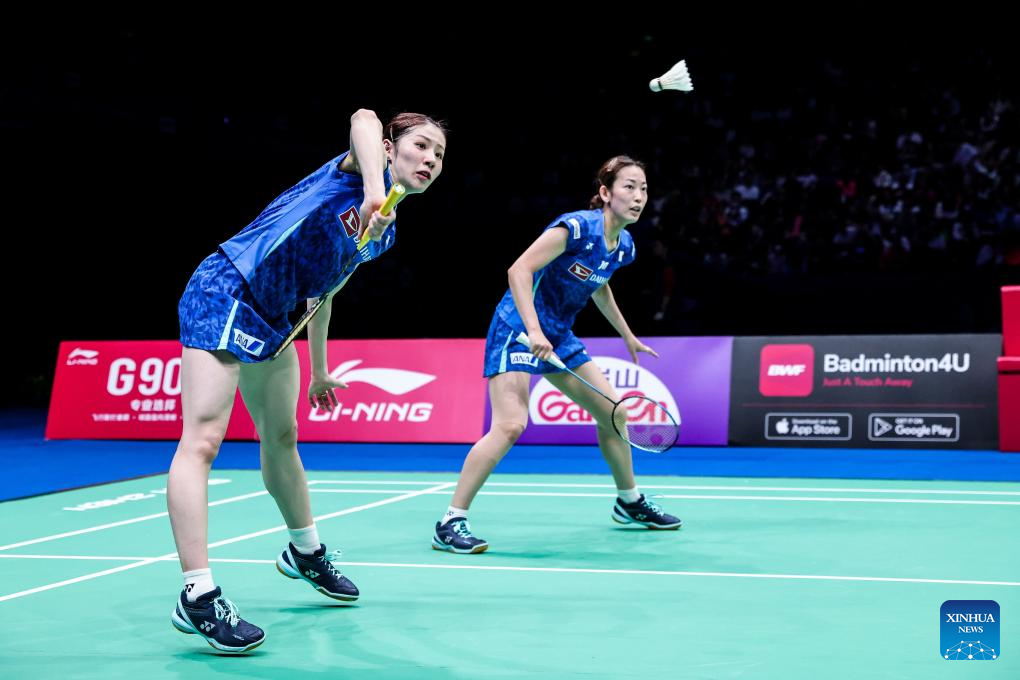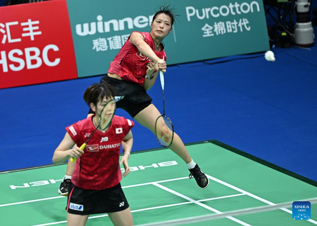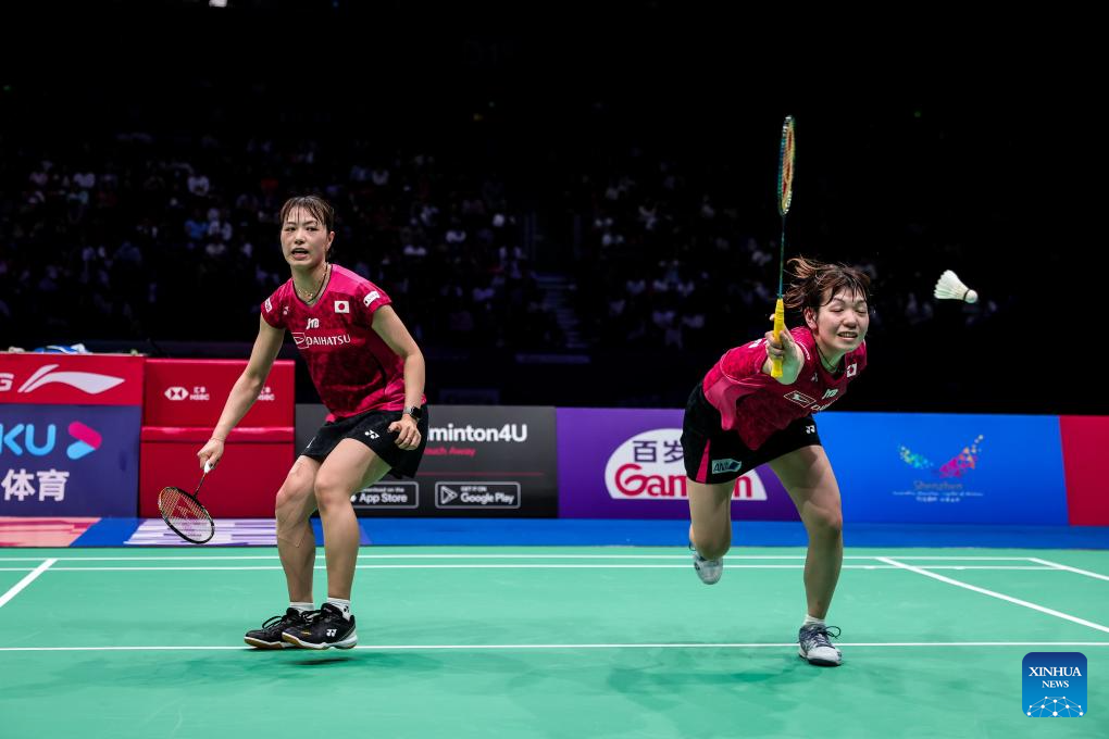 Matsuyama Nami/Shida Chiharu (L) of Japan compete during the women's doubles final against their compatriots Fukushima Yuki/Hirota Sayaka at the China Masters Badminton Tournament 2023 in Shenzhen, south China's Guangdong Province, Nov. 26, 2023. (Xinhua/Mao Siqian)