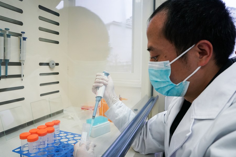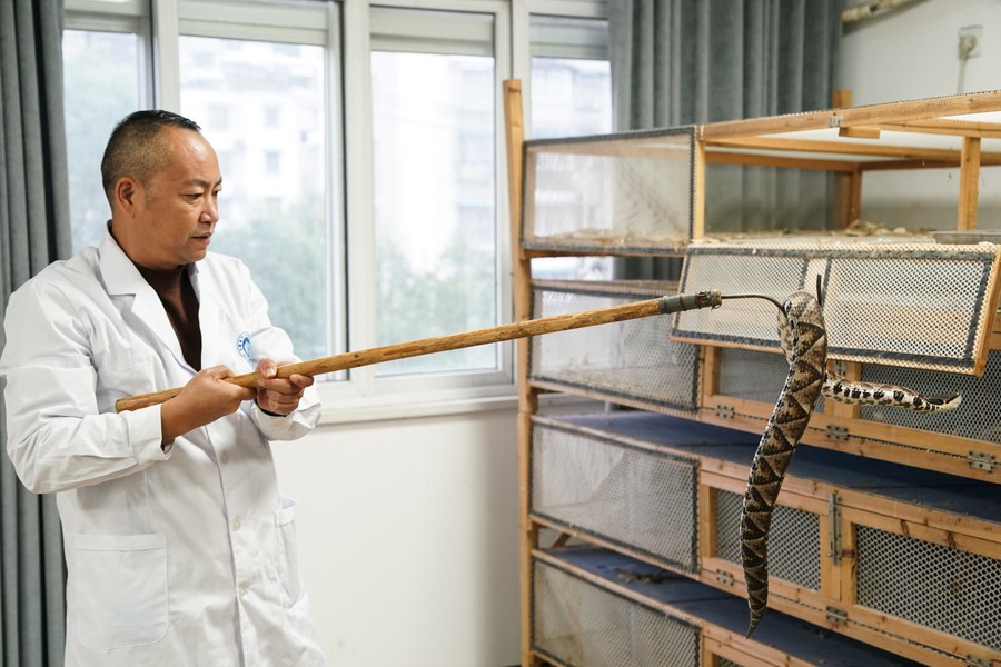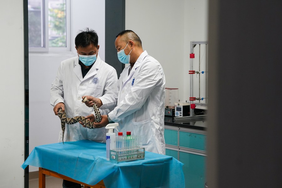 A staff member conducts research on snake venom at Qimen Institute of Snakebite in Qimen County of Huangshan City, east China's Anhui Province, Nov. 8, 2023. (Xinhua/Du Yu)