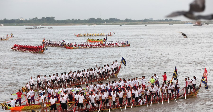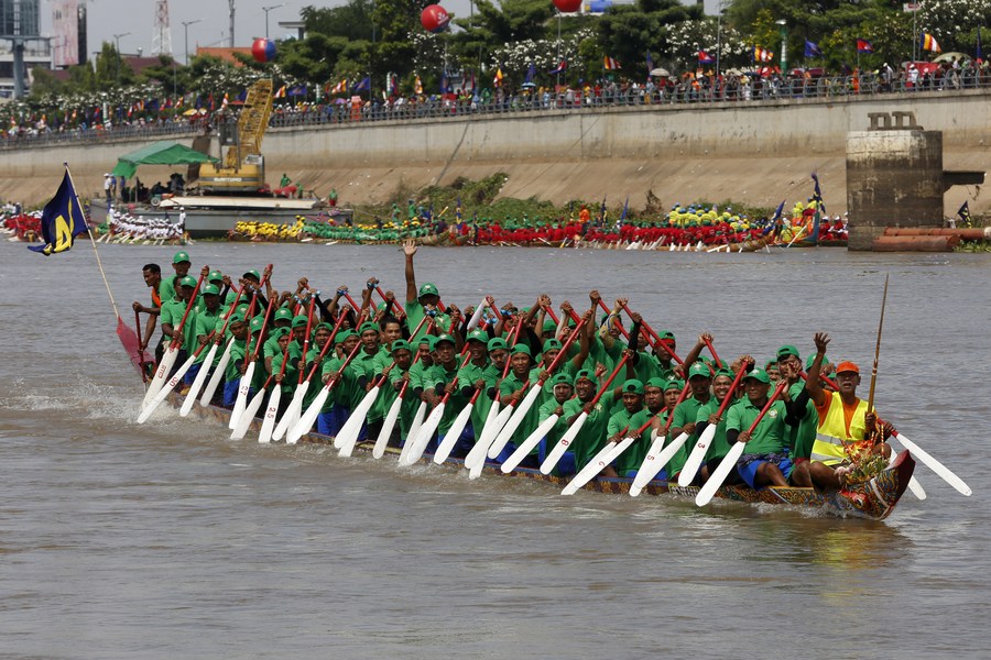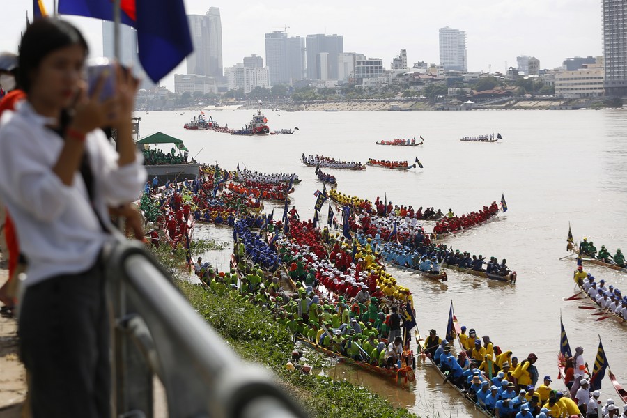 Tens of thousands of spectators gathered on both sides of the Tonle Sap river in the capital Phnom Penh to cheer on oarsmen who raced their boats along a 1.7 km stretch of the river.