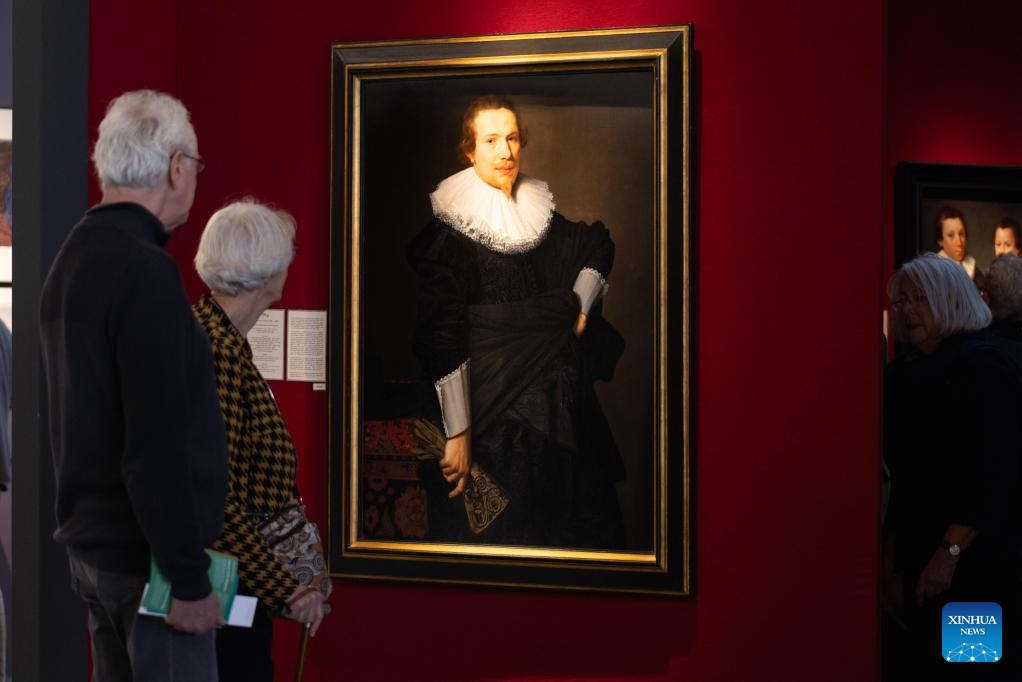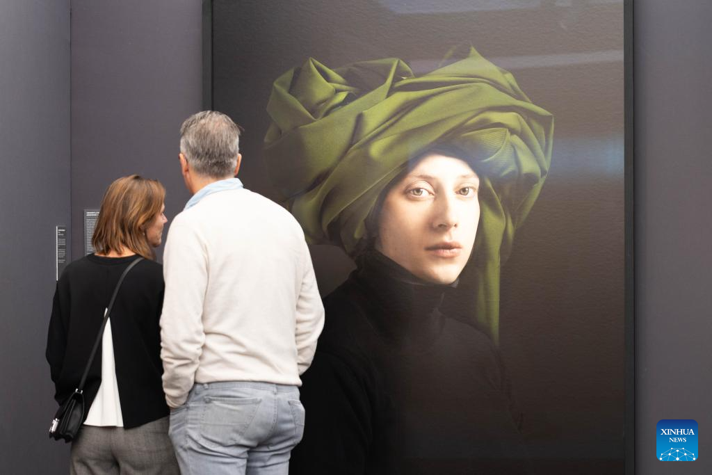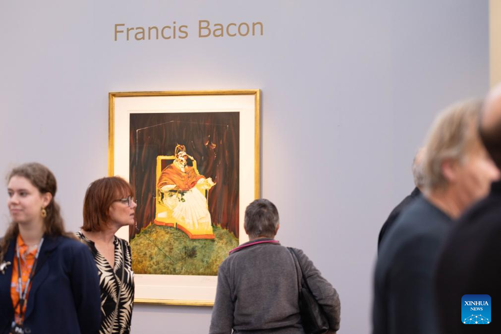 Visitors view an artwork at the 36th PAN Amsterdam at the RAI convention center in Amsterdam, the Netherlands, Nov. 23, 2023. The 36th PAN Amsterdam, the Netherlands' leading annual fair in art, antiques and design, was held from November 19 to 26 this year in Amsterdam. (Photo by Sylvia Lederer/Xinhua)