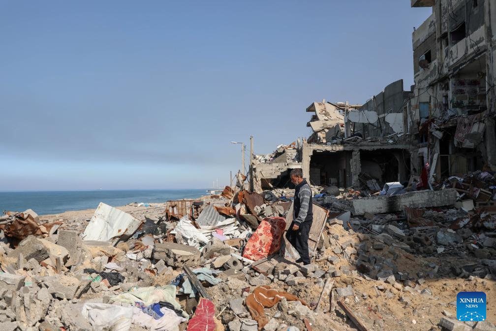 A man walks among the rubble of destroyed buildings in Gaza City, on Nov. 29, 2023. After weeks of Israeli strikes on Gaza in retaliation for an attack on Oct. 7 by Hamas against Israel, the two sides reached a four-day humanitarian truce last week, which was extended for another two days starting on Tuesday. The Palestinian death toll from the Israel-Hamas conflict has surpassed 15,000, according to Palestinian figures. Israel said that the Hamas attack killed about 1,200 people while more than 200 people were taken as hostages. (Photo by Mohammed Ali/Xinhua)