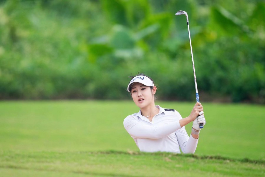 Chinese golfer Liu Wenbo warms up for the CGA Ladies Championship at Mission Hills Resort Haikou, south China's Hainan Province on Nov. 30, 2023. (Photo courtesy of CGA Ladies Championship/Xinhua)