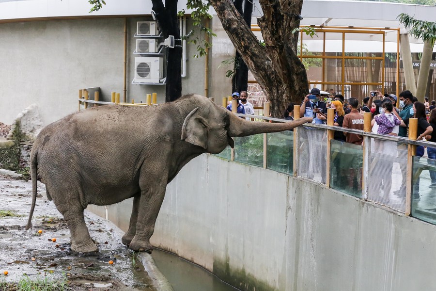 Visitors look at "Mali," the elephant inside the Manila Zoo in Manila, the Philippines, on Nov. 21, 2022. (Xinhua/Rouelle Umali)