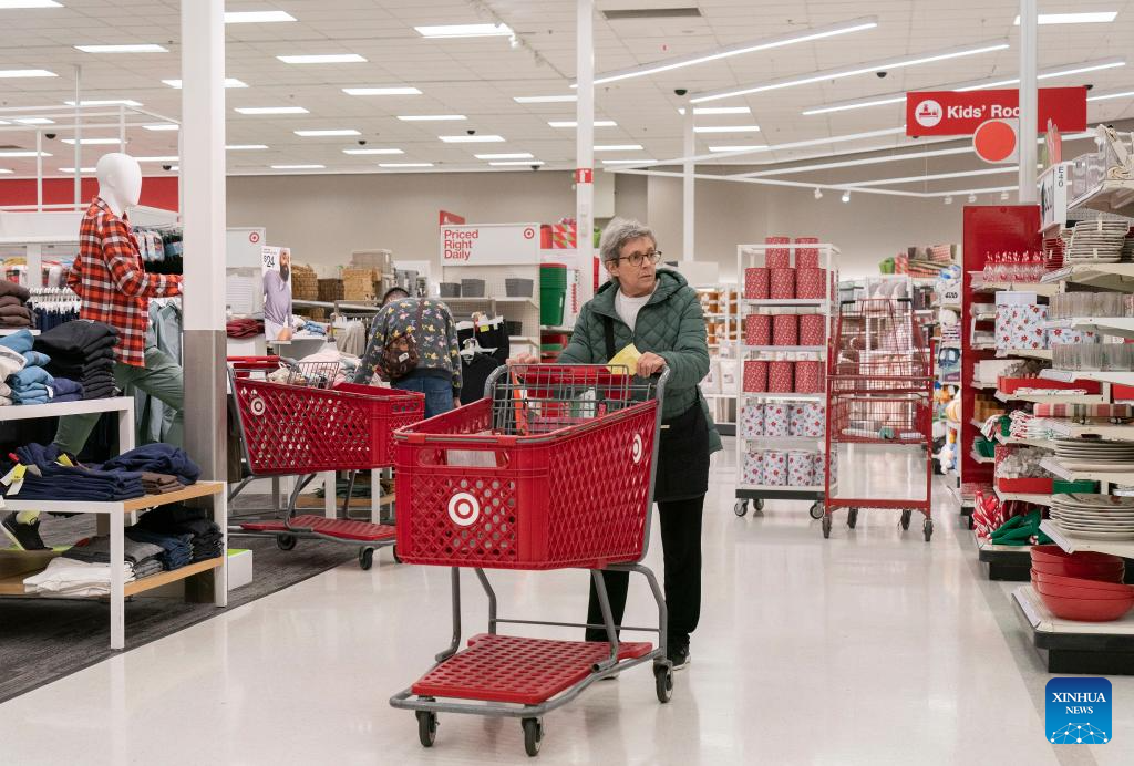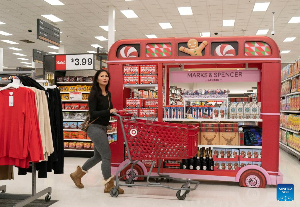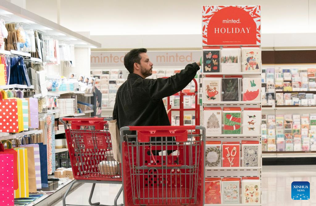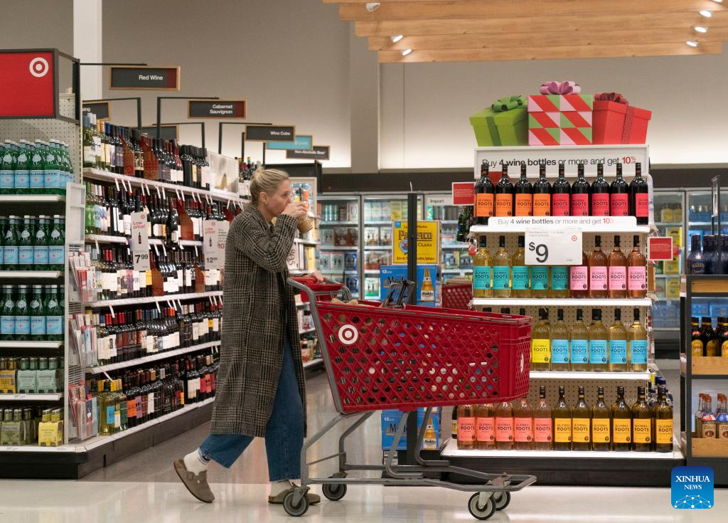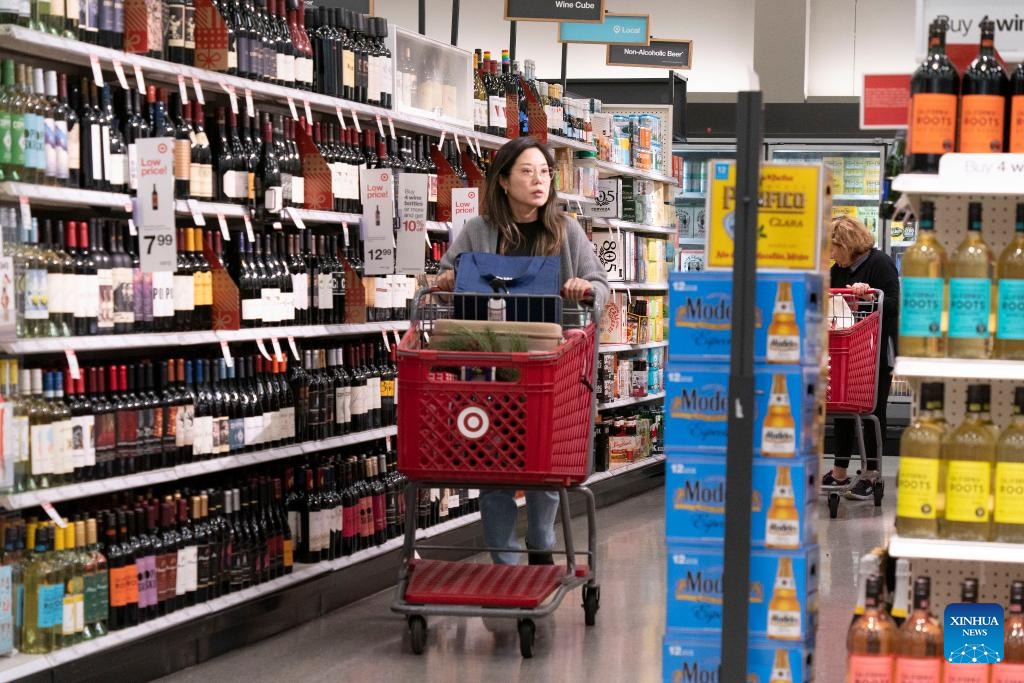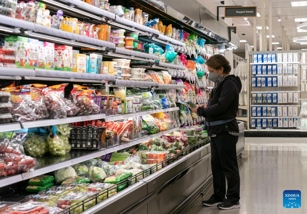 A customer selects goods at a supermarket in San Mateo, California, the United States, Nov. 29, 2023. The U.S. Commerce Department said on Wednesday that it now estimated the country's GDP grew at an annualised pace of 5.2 percent in the third quarter, up from its initial estimate of 4.9 percent. (Photo by Li Jianguo/Xinhua)