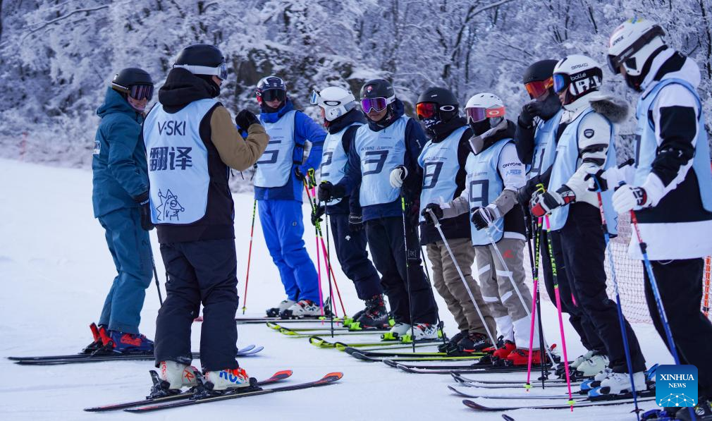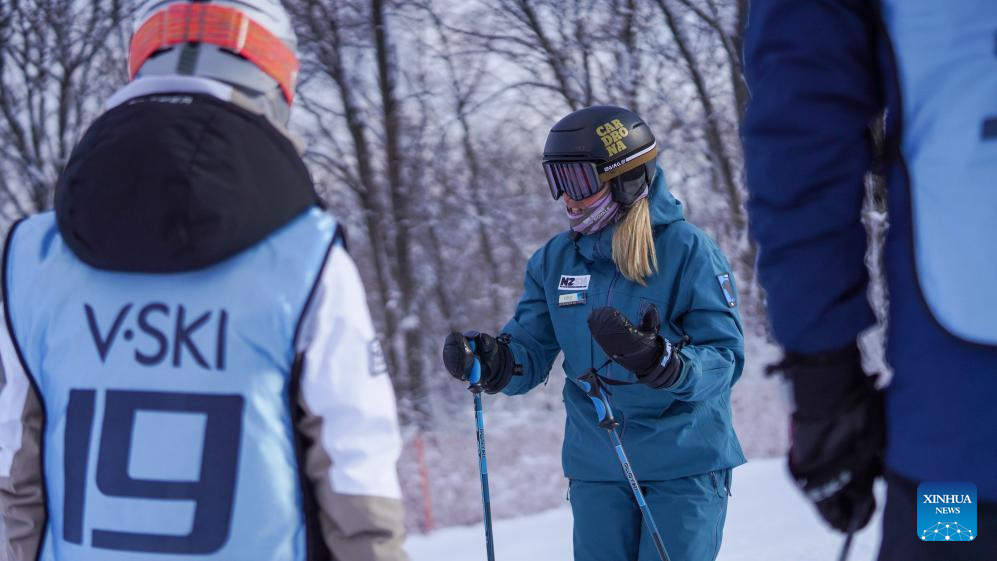 Yolinde Magill provides training for Chinese skiers in Jilin City, northeast China's Jilin Province, Nov. 29, 2023. Yolinde Magill is a professional ski instructor from Cardrona, New Zealand. She was attracted by the advanced ski facilities and hospitality of local people during her first visit to China in 2016. Ever since then, she has come to China to provide ski training every winter.