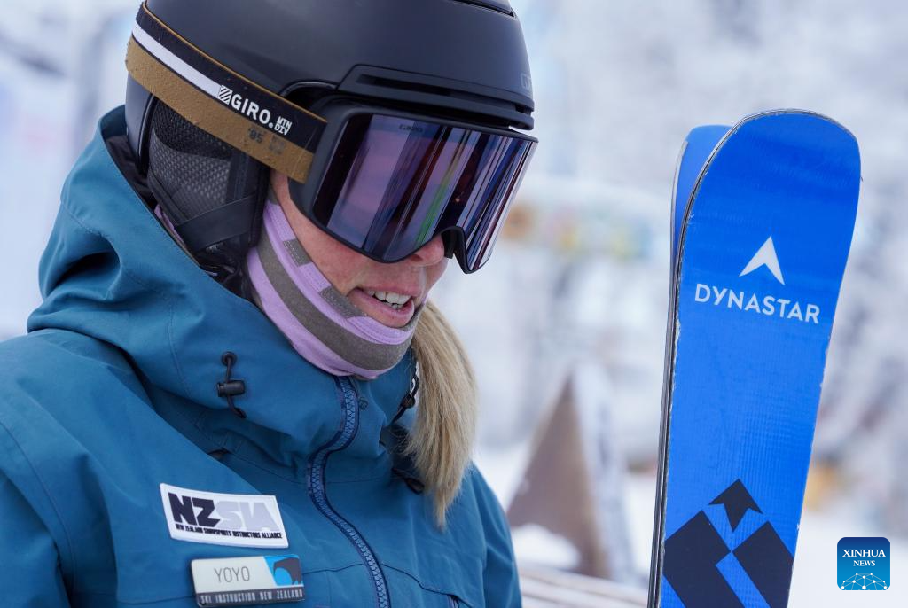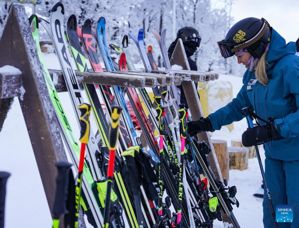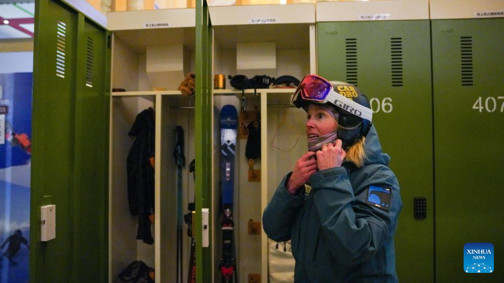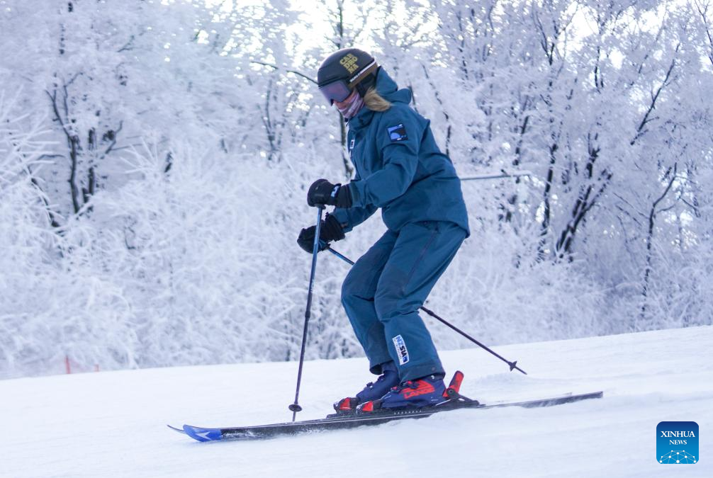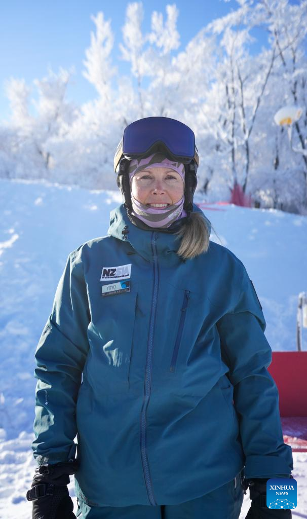 Yolinde Magill prepares for training at Lake Songhua Resort in Jilin City, northeast China's Jilin Province, Nov. 29, 2023. Yolinde Magill is a professional ski instructor from Cardrona, New Zealand. She was attracted by the advanced ski facilities and hospitality of local people during her first visit to China in 2016. Ever since then, she has come to China to provide ski training every winter.